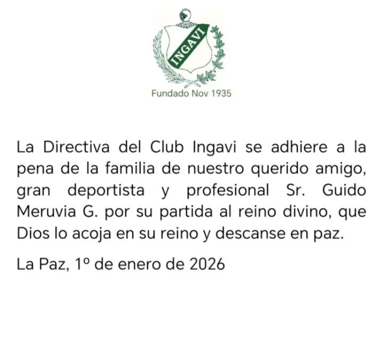 El básquetbol boliviano y el Club Ingavi de La Paz inició con luto el 2026. Este jueves por la mañana falleció Guido Meruvia Gutiérrez a causa de un paro cardíaco. Es recordado como “muy buen amigo” y un “gran jugador”.