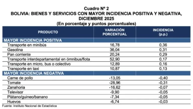 “En dos meses de gestión del Gobierno del presidente Rodrigo Paz se logró estabilizar los precios y la inflación comenzó a descender. Las proyecciones gubernamentales es que en los próximos meses el índice sea aún inferior. Entre algunos de los factores que contribuyen a estos resultados está la estabilización del tipo de cambio”, dice la nota del Ministerio de Planificación.