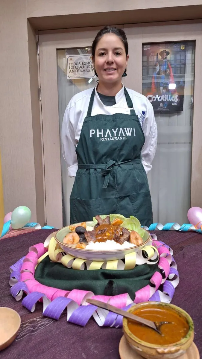 Durante el lanzamiento de la agenda del carnaval boliviano, Arteaga compartió la receta del puchero cochabambino al estilo de Phayawi, que cuenta con hojas de repollo, garbanzo, papa, chuño, res y un ahogado.
