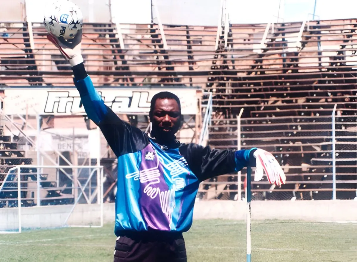 Thomas N’Kono en el antiguo estadio de Tembladerani. Jugó en 3 Copas del Mundo con Camerún: 1982, 1990 y 1994.