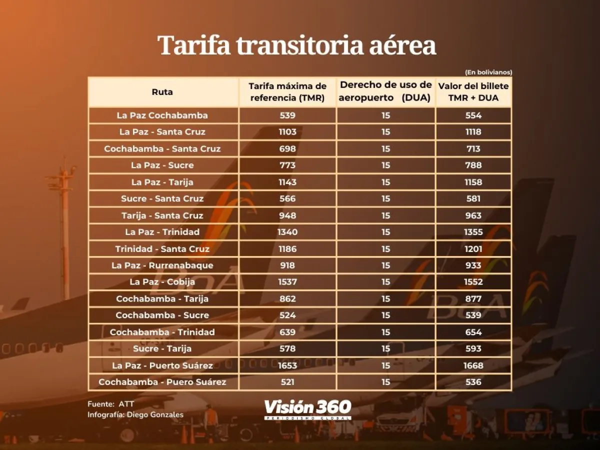 “Aprobar el ajuste provisional de las Tarifas Máximas de Referencia vigentes para el Servicio Público de Transporte Aéreo Doméstico de pasajeros”, señala la Resolución Administrativa Regulatoria de la ATT.
