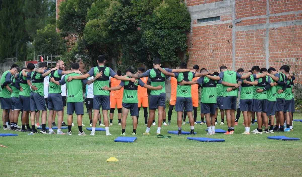 El plantel completo de Real Tomayapo antes de iniciar uno de sus últimos entrenamientos. Foto: CRT