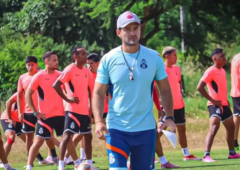 Joaquín Monasterio (centro) dirige un entrenamiento del Rojo de Montero: Crédito Club Guabirá