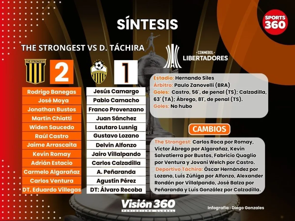 En un partido muy complicado y disputado, The Strongest solo sacó la diferencia de un gol al ganar por 2-1 al venezolano Deportivo Táchira con dos goles de penal, este martes por la noche en el estadio Hernando Siles por la ida de la Fase 1 de la Copa Libertadores de América.