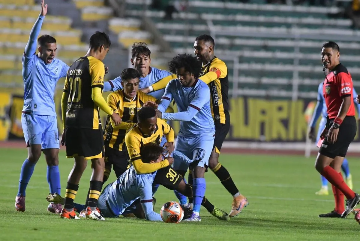 El clásico paceño se tiñó de celeste luego de que en los 90 minutos empataran sin goles (global 2-2) y después de dos expulsiones, ya que Patricio Rodríguez y Jaime Arrascaita vieron la roja por los incidentes que tuvieron.
