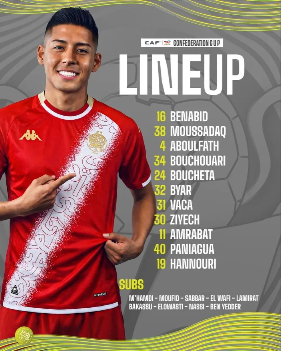 Paniagua, que jugó su segundo partido con el Wydad, también por la Copa Confederación del continente africano, estuvo en la cancha 66 minutos y después le dejó su lugar a Walid Nassi.