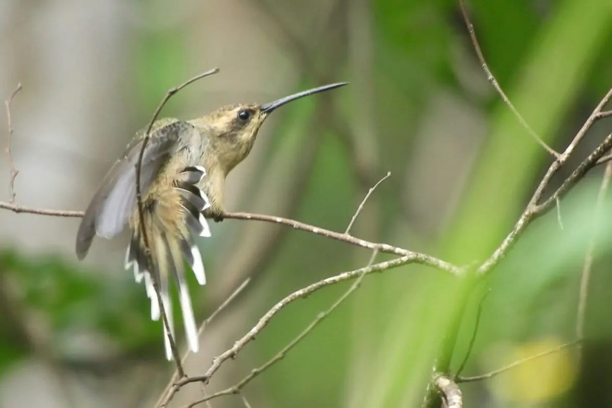 El ermitaño ocráceo​ o ermitaño chico pálido es un ave que habita en la Serranía de Sunsas. Foto: cortesía Museo de Historia Natural Noel Kempff Mercado