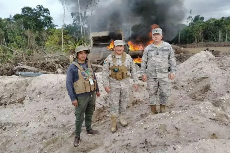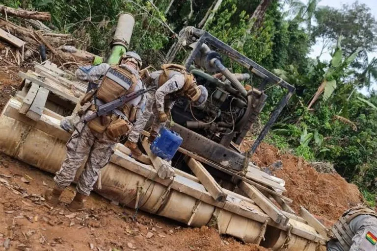 La autoridad militar agregó que se determinó que el campamento minero estuvo operando “entre tres a cuatro años” y que el ingreso en época de lluvia es “imposible”. Villazón dijo que existen “más de tres campamentos en la zona” y que alrededor de 600 personas operan en la minería ilegal en esta parte de Bolivia.
