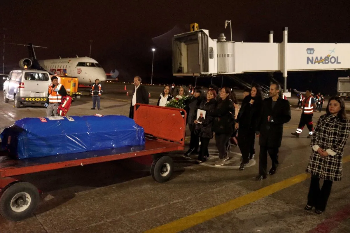 Los restos de Santalla tras arribar al Aeropuerto de El Alto. Foto: Vocería
