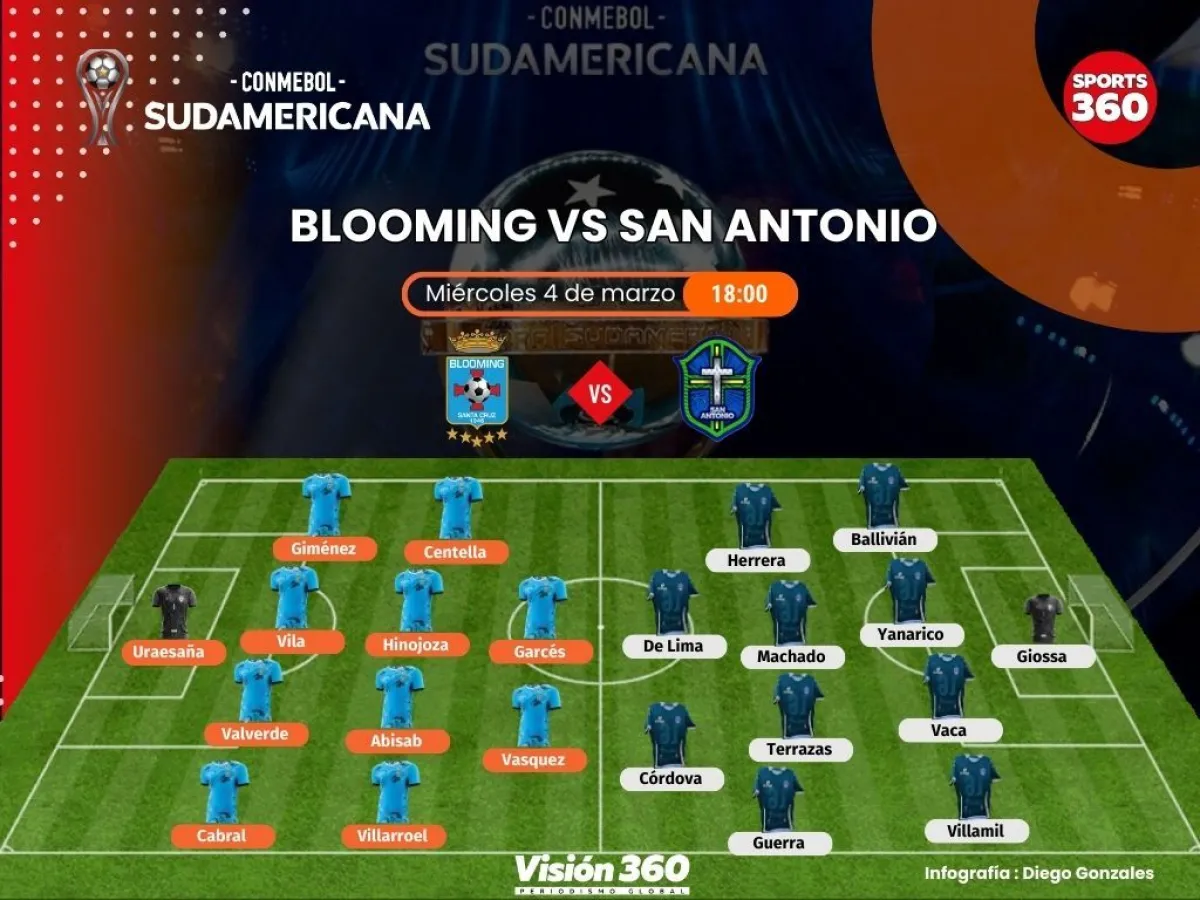 Blooming y San Antonio disputarán esta noche el pase a la fase de grupos de la Copa Sudamericana en el encuentro que sostendrán desde las 18:00 en el estadio Tahuichi Aguilera.