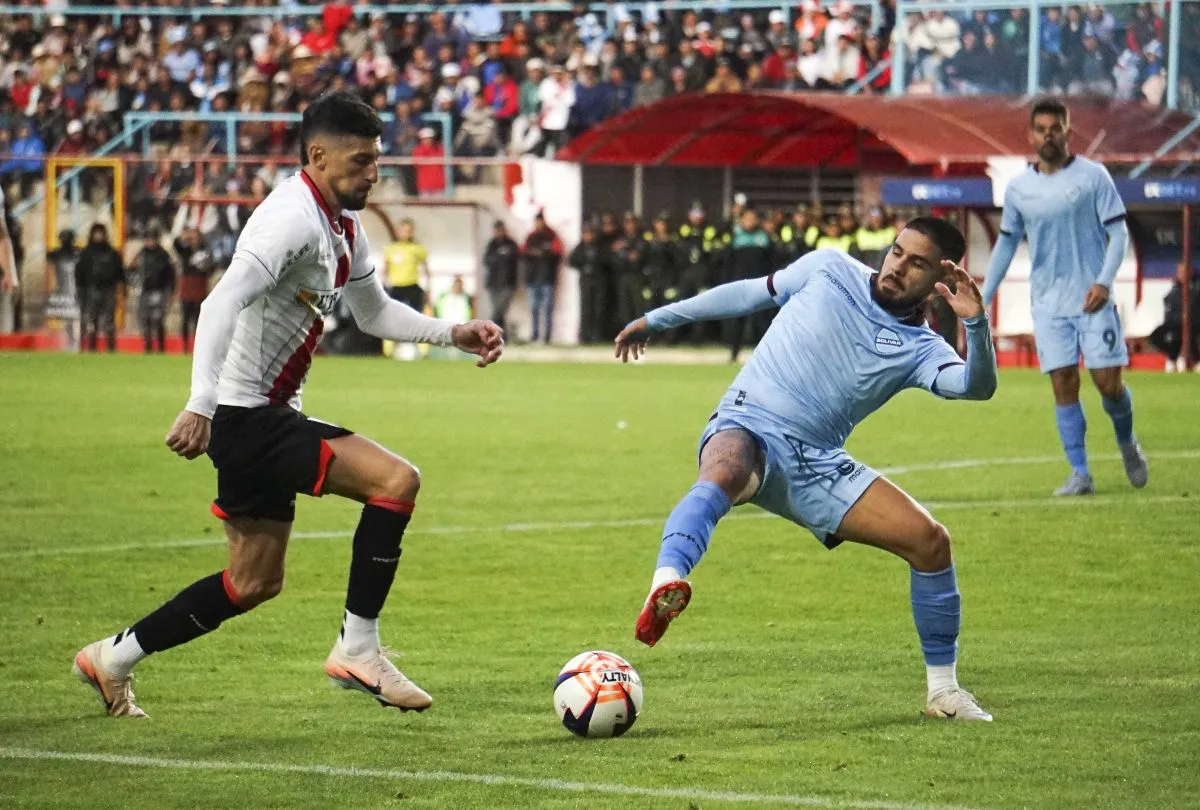 Amoroso (izq.), de Always, disputa una pelota con Melgar de Bolívar, en el partido del jueves en El Alto. Foto: APG
