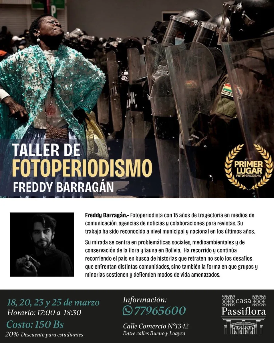 La muestra reúne fotografías tomadas durante los conflictos cocaleros de 2021 en La Paz, posteriormente intervenidas con pintura y técnicas mixtas. En el marco de la exposición, el fotoperiodista también dictará un taller dirigido a fotógrafos, estudiantes y personas interesadas en aprender a narrar historias a través de la imagen.