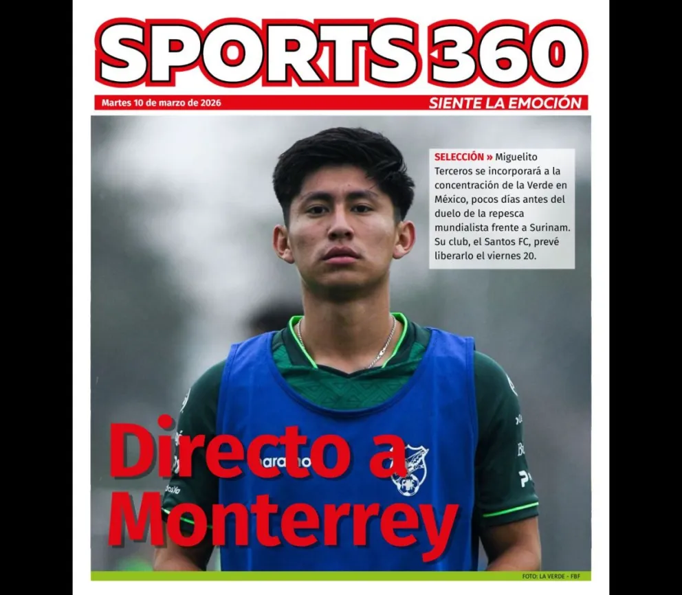 Miguelito Terceros, jugador del Santos FC de Brasil, se incorporará al trabajo de la Selección nacional en Monterrey, México, solo cuatro o cinco días antes del partido frente a Surinam por la repesca mundialista, que se jugará el jueves 26 de este mes, según informó el Diario del Peixe.