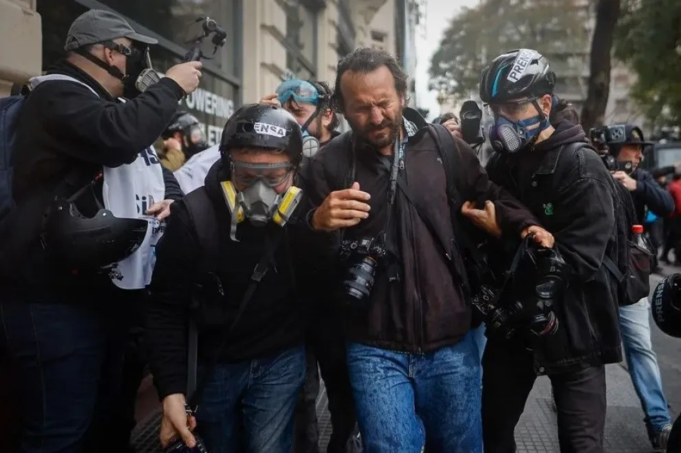 Un fotógrafo afectado por los enfrentamientos entre manifestantes y integrantes de la Policía de Argentina durante una protesta de jubilados en Buenos Aires. Foto: EFE