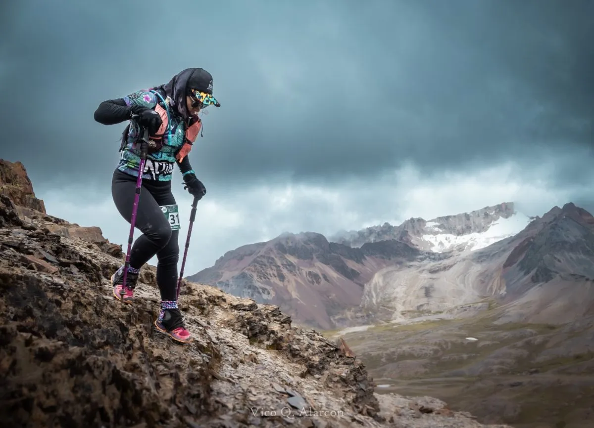 Una corredora pasa por un descenso en la prueba. Foto: Skyrunning Bolivia.