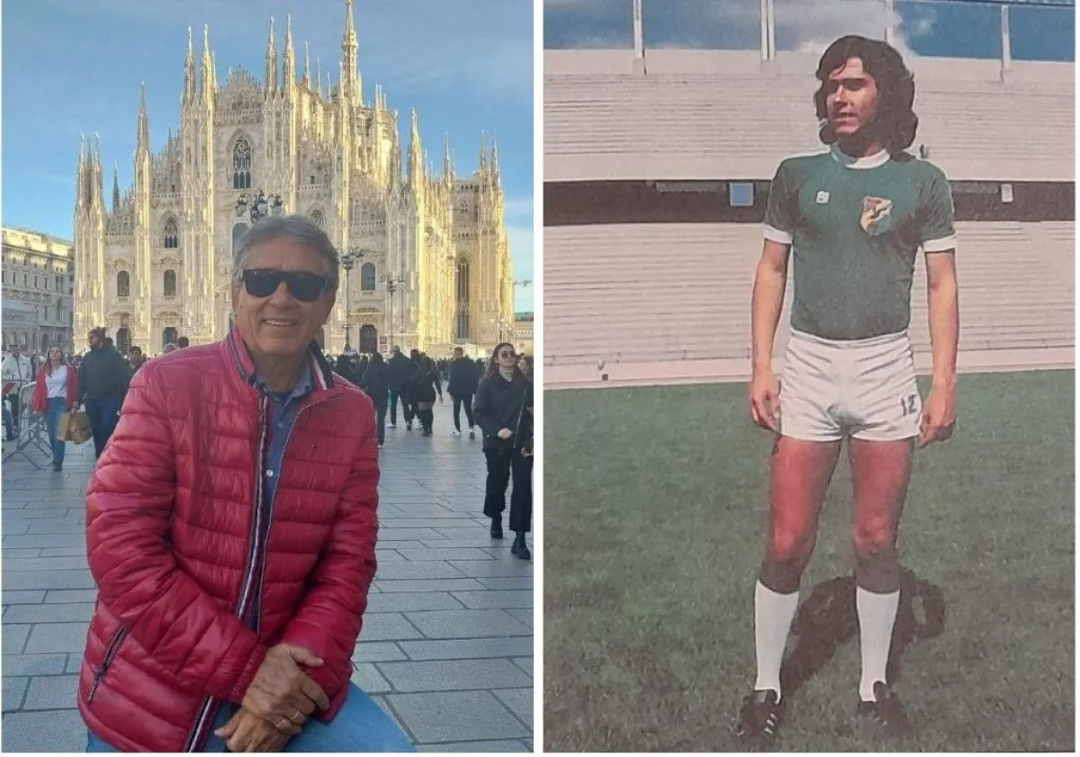 Aragonés en la actualidad. A la derecha, en su época de jugador. Crédito: Historia del Fútbol Boliviano