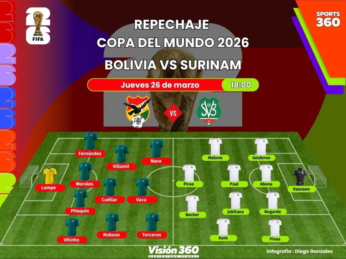 Villegas y su cuerpo técnico admitieron durante las últimas semanas que la base del equipo que clasificó al repechaje será la que encare el lance de este jueves, con algún retoque que pueda presentar como la presencia de Fernando Nava o la de Juan Godoy en el ataque, aun no suena descabellado que Terceros juegue como un falso 9 ante los surinameses.