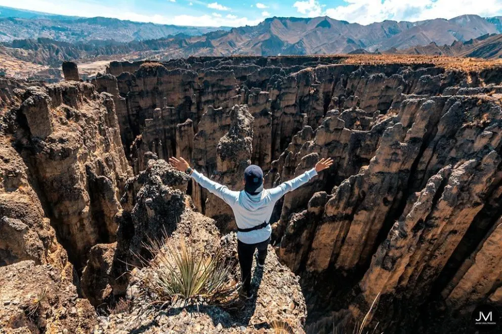 “Al sur de La Paz, colindante con los barrios de Achumani y Huayllani, emergen de la tierra una seguidilla de torres naturales que terminan en picos altos. A lo lejos, este sitio parece un cuartel de aguijones gigantes, por lo que ha sido bautizado como ‘El valle de las agujas’. Para llegar desde el centro de la ciudad se tarda máximo 50 minutos, ya sea en transporte público o privado”.