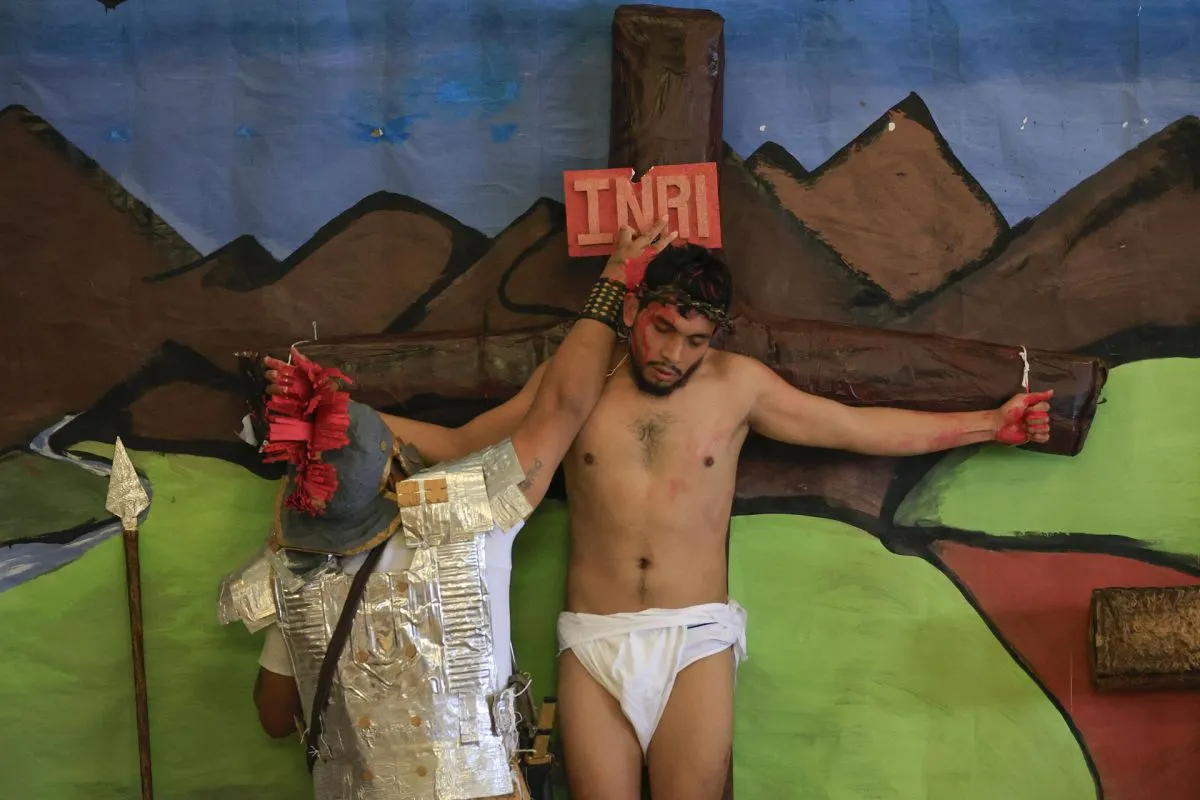 "Llevamos aproximadamente 30 días de preparación, mucho trabajo, esfuerzo, sacrificio, pero aquí estamos interpretando el personaje de Jesús", dice a EFE Eduardo, identificado solo con el nombre, al concluir la obra, mientras porta aún la corona de espinos y el ropaje blanco salpicado de sangre.