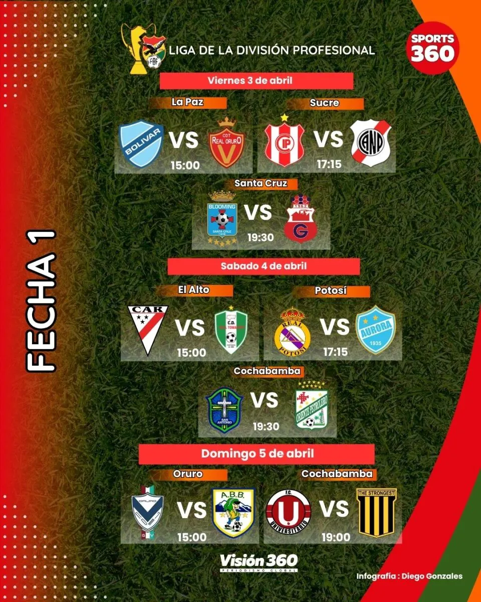 El fútbol boliviano levanta el telón este viernes con el inicio de la Liga de la División Profesional 2026, torneo todos contra todos que definirá al campeón nacional de la temporada.