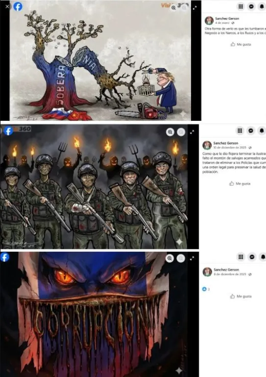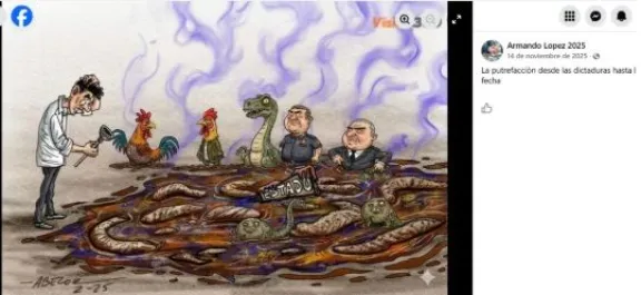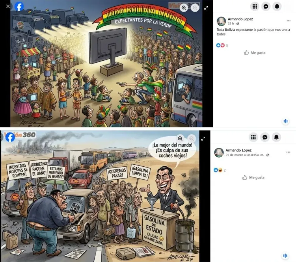 Bolivia Verifica recopiló, entre noviembre de 2025 y marzo de este año, un total de 22 caricaturas adicionales a la ya presentada y analizada previamente, que fueron alteradas y luego difundidas con el objetivo de engañar a los usuarios. La mayoría de estos contenidos fue difundida por el perfil de Facebook Armando López, pero también se detectó la participación de al menos otras nueve cuentas de usuarios que compartieron estos materiales.
