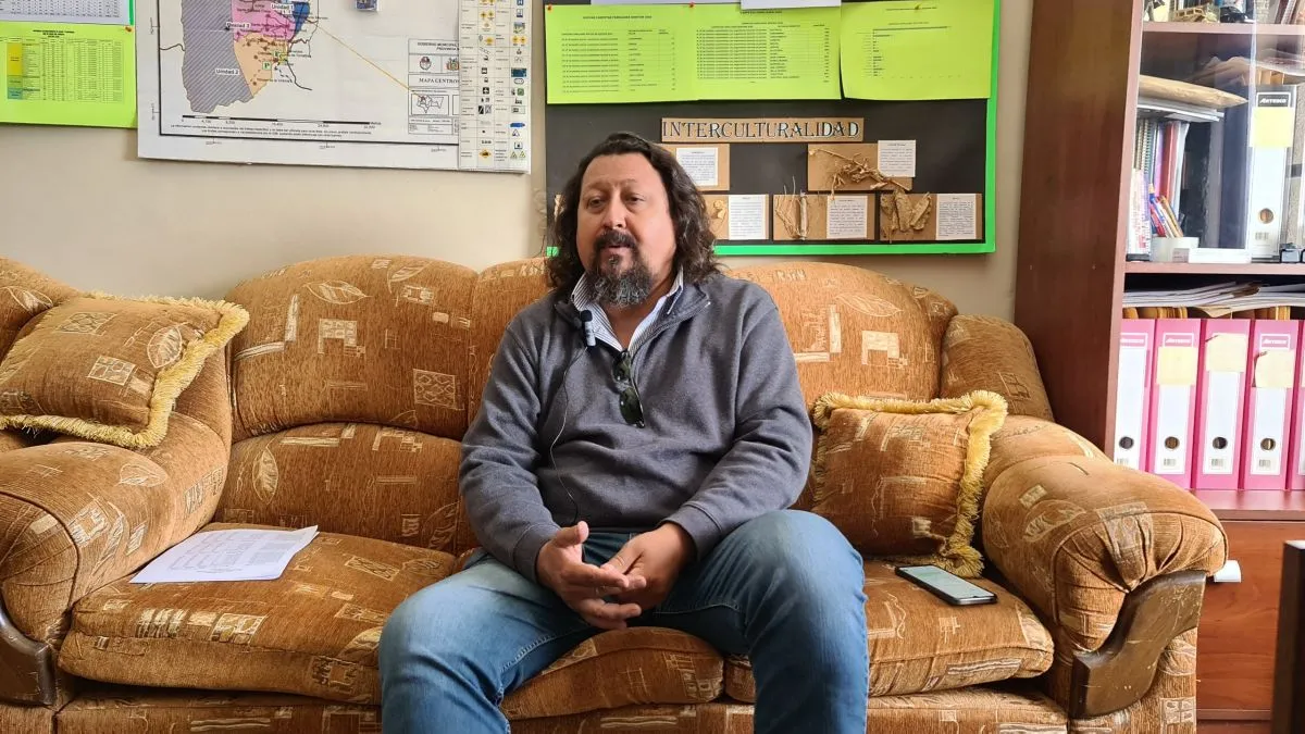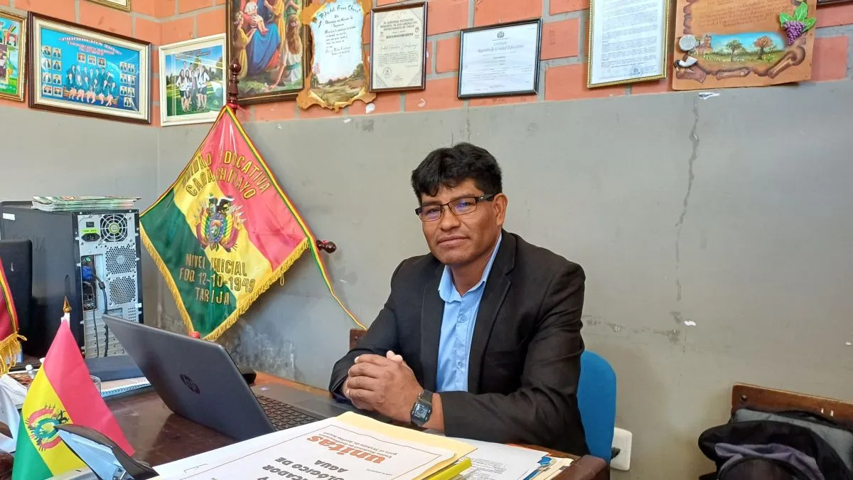 El director Armando Mamani en la dirección del colegio San José de Carachimayo