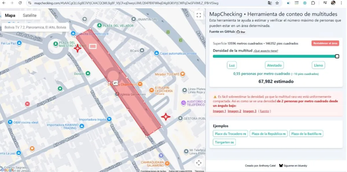 Según la herramienta Mapchecking, existió un aproximado de 60.000 personas en la avenida Panorámica de la ciudad de El Alto.