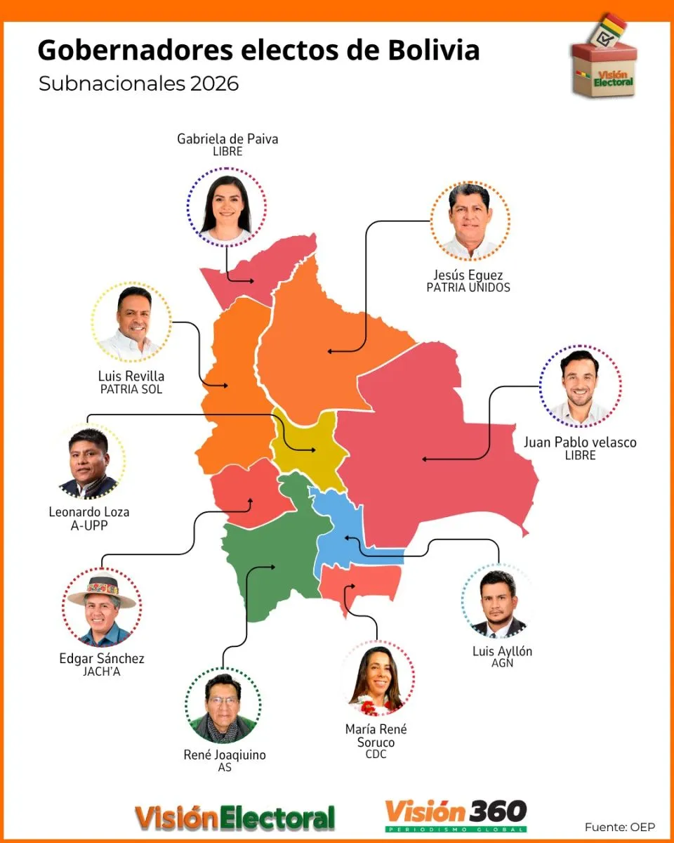Los resultados preliminares y el cómputo oficial en curso dan cuenta de que Bolivia ya tiene un nuevo mapa político, en el que el oficialismo cuenta con dos gobernaciones y el frente Libre, liderado por Jorge Tuto Quiroga, también tiene dos. Por otro lado, el “evismo” consiguió una gobernación.