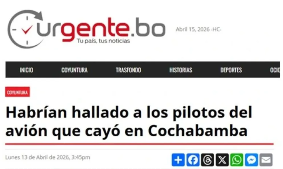 2. Urgente.bo: «Habrían hallado a los pilotos del avión que cayó en Cochabamba»