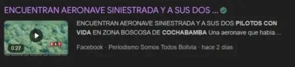 6. Periodismo Somos Todos: «ENCUENTRAN AERONAVE SINIESTRADA Y A SUS DOS PILOTOS CON VIDA EN ZONA BOSCOSA DE COCHABAMBA»