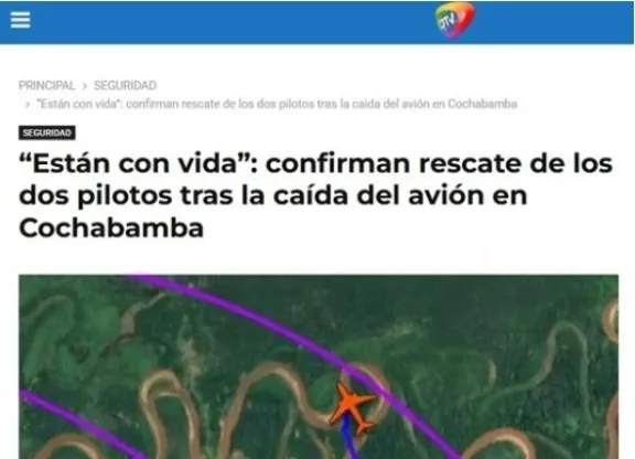 7. Detrás de la Verdad: «‘Están con vida’: confirman rescate de los dos pilotos tras la caída del avión en Cochabamba»