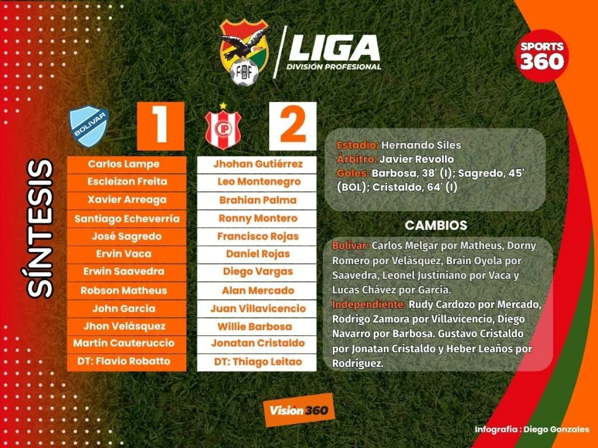 Independiente de Sucre prolongó la crisis futbolística por la que atraviesa Bolívar, le ganó por 1 a 2 y lo dejó sin invicto, partido de la tercera jornada de la Liga de la División Profesional que se jugó en el estadio Hernando Siles en la noche de este martes.