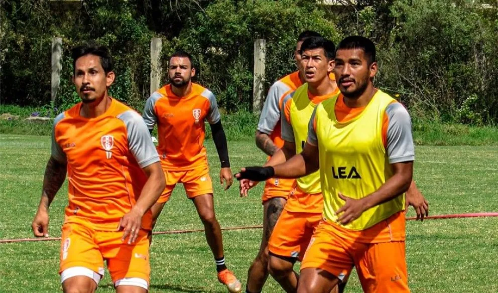 Bejarano (izq.) y otros jugadores de Real Tomayapo en el cierre de entrenamientos antes del partido frente al Tigre. Foto: Club Tomayapo